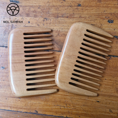 Sisir home made pengrajin asal Nganjuk, Jawa Timur. Terbuat dari upcycled kayu jati dan sawo, sehingga setiap bentuknya unik tidak identik satu sama lain.